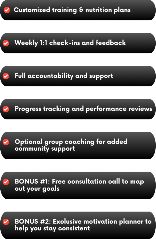 No more cookie-cutter programs or confusing routines. I help you train smarter, stay consistent, and finally see results that last.